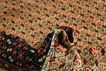 個々のノットやノットの列全体を切断することにより、ノットを結び付けてパイルの列を形成する専門の職人による高度な技術です。 手編みのラグは時間がかかりますが、複雑な模様も生成することができます。