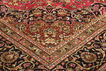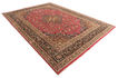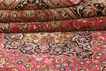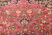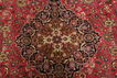 絨毯はペルシャ東北部にあるホラーサーン州の州都であるマシュハドにて手織りされたものです。絨毯のパターンは濃い赤と青色のニュアンスを持ったメダリオンが描かれ、非常に柔らかいウールが使用されています。マシュハド産絨毯は、しばしばケシャン産絨毯に似ています。