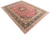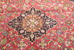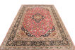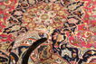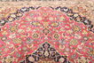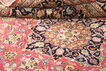 絨毯はペルシャ東北部にあるホラーサーン州の州都であるマシュハドにて手織りされたものです。絨毯のパターンは濃い赤と青色のニュアンスを持ったメダリオンが描かれ、非常に柔らかいウールが使用されています。マシュハド産絨毯は、しばしばケシャン産絨毯に似ています。