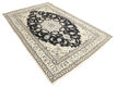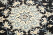 絨毯は、ペルシャ中央部に位置するイスファハンの近くにあるナイン市の工房で手織りされています。絨毯は、非常に明るく、一般的にクリーム色や藍色が背景色で構成されており、中央にある大きなメダリオンが特徴的です。高ノット密度と高品質の原料を使用して上質な絨毯に仕上がっています。ナイン産絨毯はほとんどのサイズで作られ、世界で最も美しい絨毯の中の一つとして考えられており、絨毯コレクターの中でも非常に人気があります。