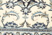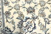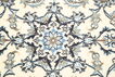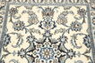 絨毯は、ペルシャ中央部に位置するイスファハンの近くにあるナイン市の工房で手織りされています。絨毯は、非常に明るく、一般的にクリーム色や藍色が背景色で構成されており、中央にある大きなメダリオンが特徴的です。高ノット密度と高品質の原料を使用して上質な絨毯に仕上がっています。ナイン産絨毯はほとんどのサイズで作られ、世界で最も美しい絨毯の中の一つとして考えられており、絨毯コレクターの中でも非常に人気があります。